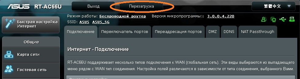 Роутеры Asus, как и другие роутеры, перезапускаются не только с помощью выключения адаптера питания из розетки либо кнопкой включения/выключения (если она есть), но и через веб-интерфейс.