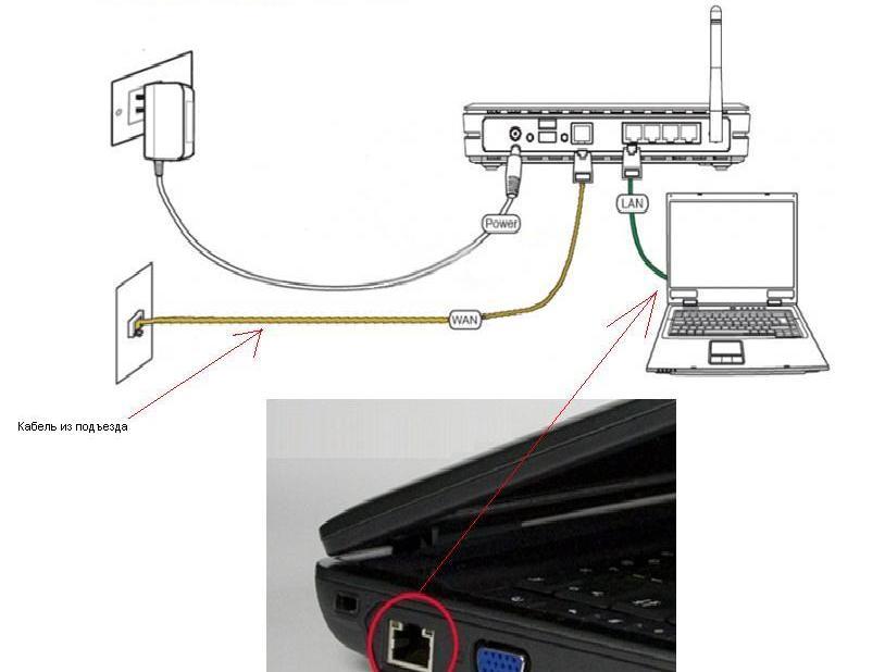 После покупки или при полном сбросе настроек Asus RT-N18U будет работать с параметрами по умолчанию. При подключении роутера по кабелю придерживайтесь наиболее распространённой схемы подключения: кабель провайдера подключается в разъём WAN роутера, а кабели от ПК и ноутбуков — в разъёмы LAN.