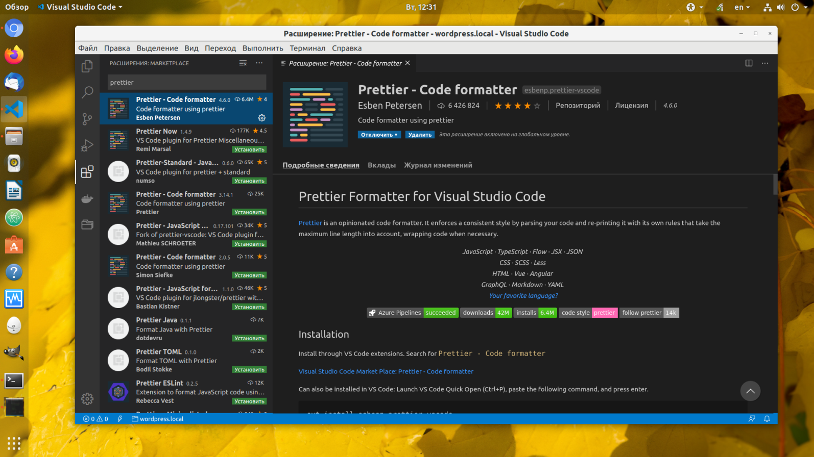 Один из самых важных моментов в работе с кодом — это его однообразие. Приводить код к одному виду вручную не всегда удобно — для этого и были придуманы различные расширения. Это PHP-CS-Fixer для PHP и Prettier для JS/HTML/CSS. Установите их через меню установки дополнений, а затем используйте сочетание клавиш Ctrl+Shift+F в Windows или Ctrl+Shift+I в Linux, для того чтобы выполнять выравнивание кода Visual Studio Code.