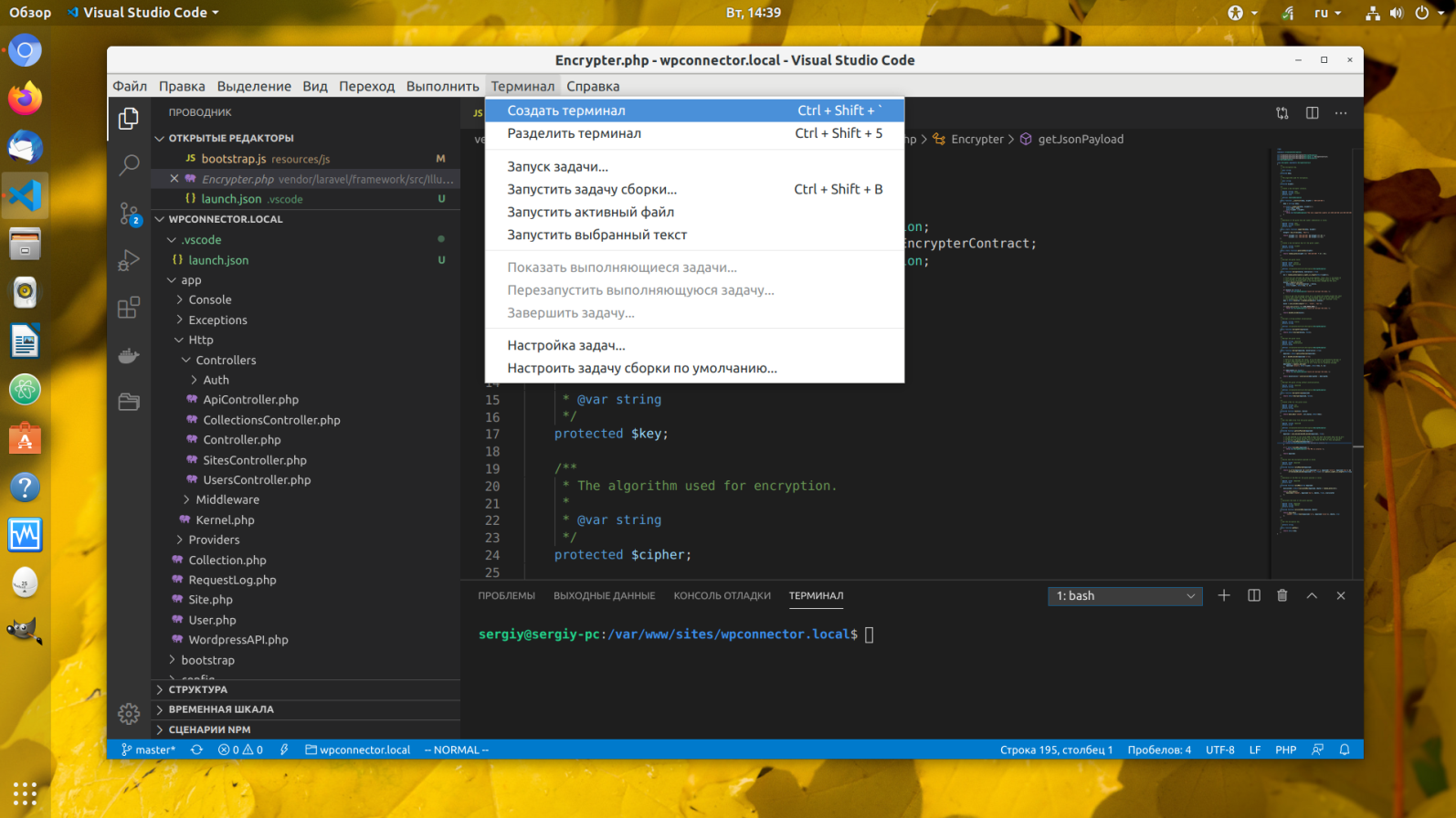 В завершении поговорим о чём-то более простом. Одно из преимуществ VS Code перед другими редакторами — это встроенный терминал, который позволяет выполнять команды в системной оболочке Linux или в выбранной оболочке Windows. Если терминал ещё не открыт, вы можете сделать это с помощью Ctrl+Shift+P или из меню Терминал -> Создать терминал: