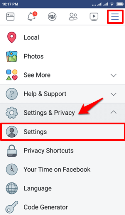 Шаг (2): Далее нажмите на кнопку «Меню», а затем прокрутите вниз и в меню «Настройки и конфиденциальность» нажмите на пункт «Настройки».