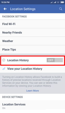 Примечание: для примера здесь мы объясняем, как отключить историю местоположений facebook на устройствах Android.