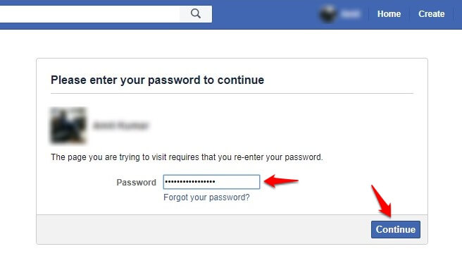 Шаг (5): Затем введите свой пароль Facebook и нажмите кнопку «Продолжить».