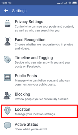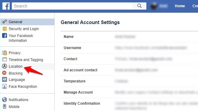 Шаг (3): На странице настроек Facebook, нажмите на опцию «Местоположение» в левом меню.
