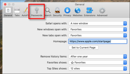Откроется окно настроек, содержащее ряд значков, натянутых сверху. Нажмите на значок «Пароли», который выглядит как ключ.