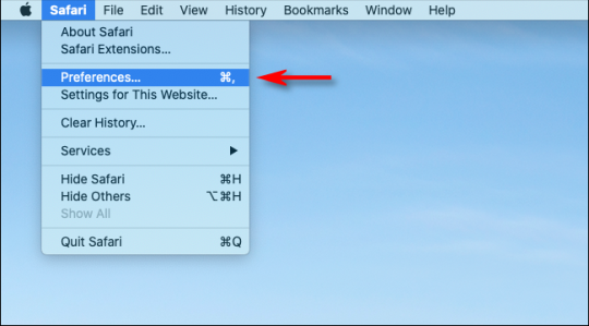 Сначала запустите Safari. В строке меню в верхней части экрана найдите меню «Safari» и щелкните по нему. Затем нажмите «Настройки».