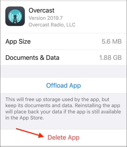 Будут времена, когда данные приложения занимают намного больше места, чем само приложение. Это наиболее распространено для приложений подкастов, музыкальных приложений и приложений аудиокниг. В этом случае вам следует открыть приложение и удалить загруженные данные, чтобы освободить место.