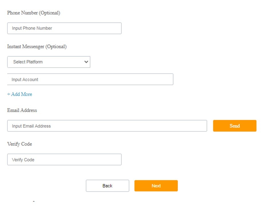 После заполнения второй страницы регистрации, необходимо будет оставить свои контактные данные для связи: номер телефона, мессенджер и имя аккаунта(не обязательно), а также, самое главное, что необходимо для дальнейшей верификации – адрес электронной почты. На него придет письмо с кодом для подтверждения аккаунта, что сделает возможной переход к завершающему этапу регистрации и началу работы.