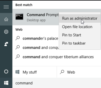 Теперь нам нужно открыть окно командной строки администратора. Нажмите «Пуск» , введите команду, затем щелкните правой кнопкой мыши верхний результат и выберите «Запуск от имени администратора».