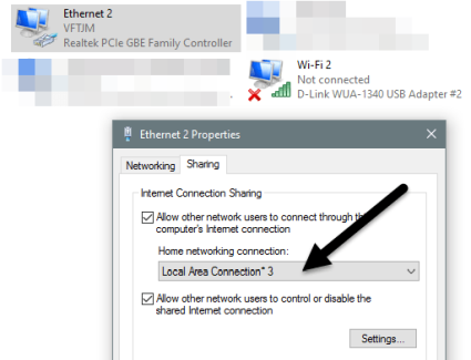Перейдите на вкладку «Общий доступ» и установите флажок «Разрешить другим пользователям сети подключаться через этот компьютер к интернет-соединению». В разделе «Подключение к домашней сети» необходимо выбрать имя адаптера для новой виртуальной беспроводной сети, в моем случае это «Подключение по локальной сети 3» . Если вы не знаете название адаптера, перейдите по адресу ncpa.cpl и найдите тот, на котором написано Microsoft Hosted Network Virtual Adapter .