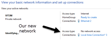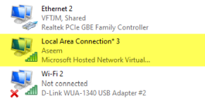Вы увидите текущую сеть, к которой вы подключены, в моем случае это Ethernet 2. Ниже вы должны увидеть свою новую сеть с надписью Нет доступа к сети и Идентификация. Если вы снова откроете ncpa.cpl или нажмете «Изменить настройки адаптера» в Центре управления сетями и общим доступом, вы увидите, что Локальное подключение 3 на самом деле является виртуальным сетевым адаптером Microsoft Hosted Network .