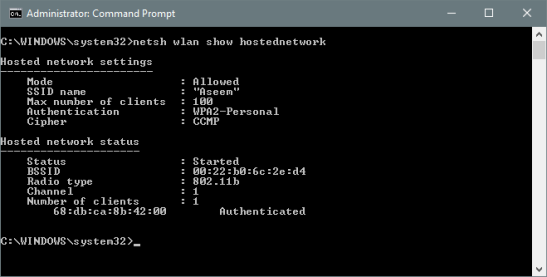 Обратите внимание, что если вы хотите узнать, сколько людей подключено к вашей новой беспроводной сети, вам нужно открыть командную строку и ввести следующую команду: