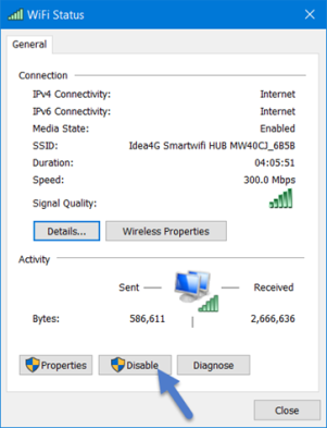 Если вы нажмете кнопку « Диагностика» рядом с ней, она запустит средство диагностики сети.