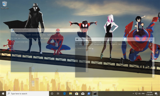 Чтобы сделать их более привлекательными, вы можете установить значение непрозрачности от 30% до 100% и сделать их более прозрачными. Посмотрите на скриншот ниже, чтобы увидеть, как они выглядят, когда непрозрачность установлена на 40%. Однако их параметры непрозрачности являются независимыми, поэтому вы можете оставить командную строку непрозрачной, когда PowerShell прозрачен, или наоборот.