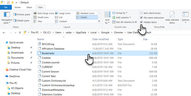 Действия по резервному копированию закладок Chrome вручную в Windows 10: