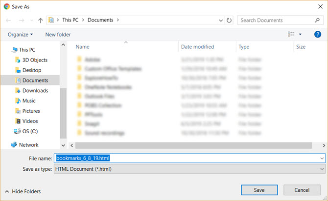 Шаг 5. Сохраните этот HTML-файл закладок Chrome в указанном месте, например в папке «Документы». Вы также можете экспортировать его напрямую на подключенную флешку или сохранить в облаке на Dropbox или Google Drive.