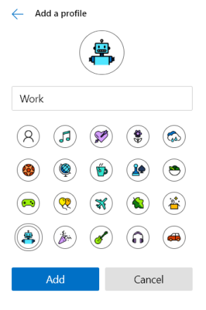 Если вы ищете более постоянный профиль, нажмите «Добавить профиль». Теперь выберите имя, выберите значок для него и нажмите Добавить. Это было так просто, как это; Вы сможете использовать свой недавно созданный профиль, который полностью отделен от вашего основного профиля. Пользователь может даже войти в этот профиль с той же или другой учетной записью, чтобы синхронизировать ваши данные и настройки. Вы можете синхронизировать столько профилей, сколько у вас есть достаточного количества различных учетных записей Microsoft.