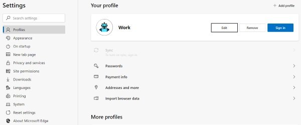 Удаление профиля также довольно просто. Откройте Edge с профилем, который вы хотите удалить. Теперь перейдите на edge://settings/people и нажмите Remove, соответствующий вашему профилю, и профиль вместе со всеми его данными будет удален с вашего компьютера.