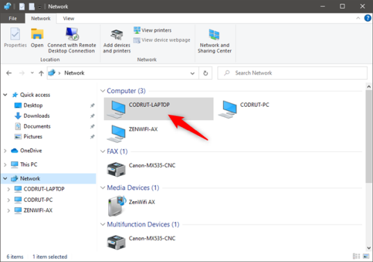 Откройте проводник , перейдите в раздел «Сеть» и дважды щелкните или дважды нажмите на ПК, где найден файл, папка или библиотека, которую вы хотите связать.