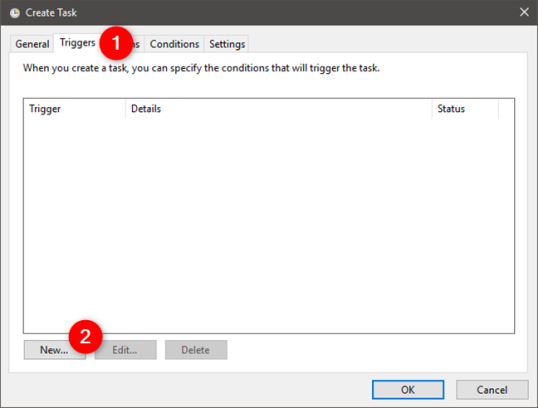 Вкладка «Триггеры» позволяет вам установить несколько триггеров. Чтобы добавить новый триггер, нажмите или коснитесь кнопки «Создать» в нижней части окна.