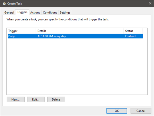 Нажмите или коснитесь OK, когда закончите с настройками этого триггера. Новый триггер отображается в списке триггеров. Вы можете либо создать новый, либо выбрать уже созданный триггер, чтобы отредактировать его или удалить.