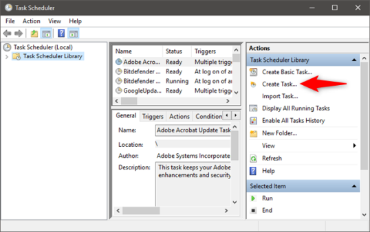 Когда вы установили все по своему усмотрению, нажмите кнопку OK , и задача будет мгновенно создана, и вы сможете найти ее в любое время в библиотеке планировщика заданий.