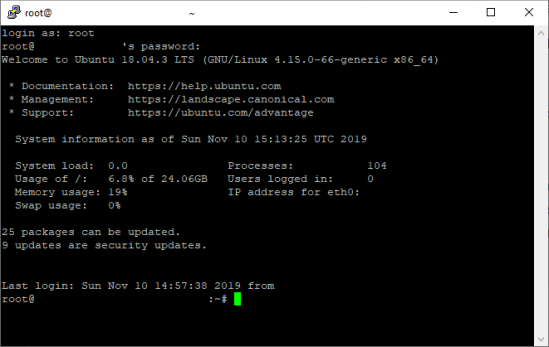 - После завершения входа в систему вам будет предоставлен доступ к окну SSH-терминала для удаленного рабочего стола.