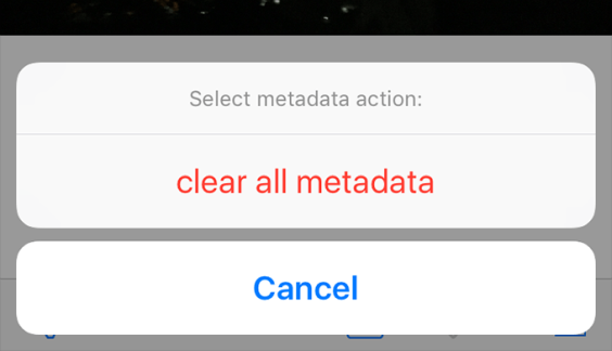 - Запустите приложение, выберите свои фотографии, коснитесь значка настроек в левом нижнем углу и выберите очистить все метаданные.