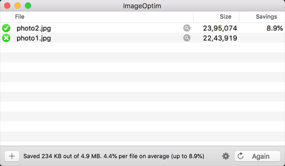 Вы заметите, что приложение не отображает информацию о ваших фотографиях на своей панели. Это подтверждает, что приложение ImageOptim действительно удалило все данные EXIF из ваших изображений.
