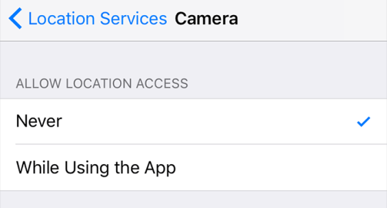 Приложение «Камера» не сможет использовать данные о вашем местоположении, и в результате ваши фотографии не будут содержать каких-либо геоданных, встроенных в них на вашем iPhone или iPad.