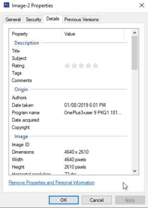 - Когда откроется окно свойств, нажмите на вкладку с надписью Детали. Вы увидите EXIF-данные выбранной вами фотографии. Чтобы избавиться от этих данных, вы найдете ссылку «Удалить свойства и личную информацию» внизу. Нажмите здесь.