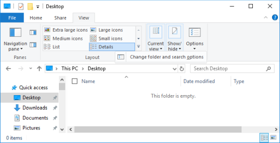 Нажмите Windows + E, чтобы открыть проводник. Перейдите в Вид → Параметры → Изменить папку и параметры поиска.