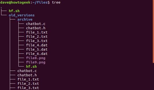 Выполнение команды tree дает простую для понимания диаграмму структуры каталогов и файлов под каталогом, из которого она запускается.