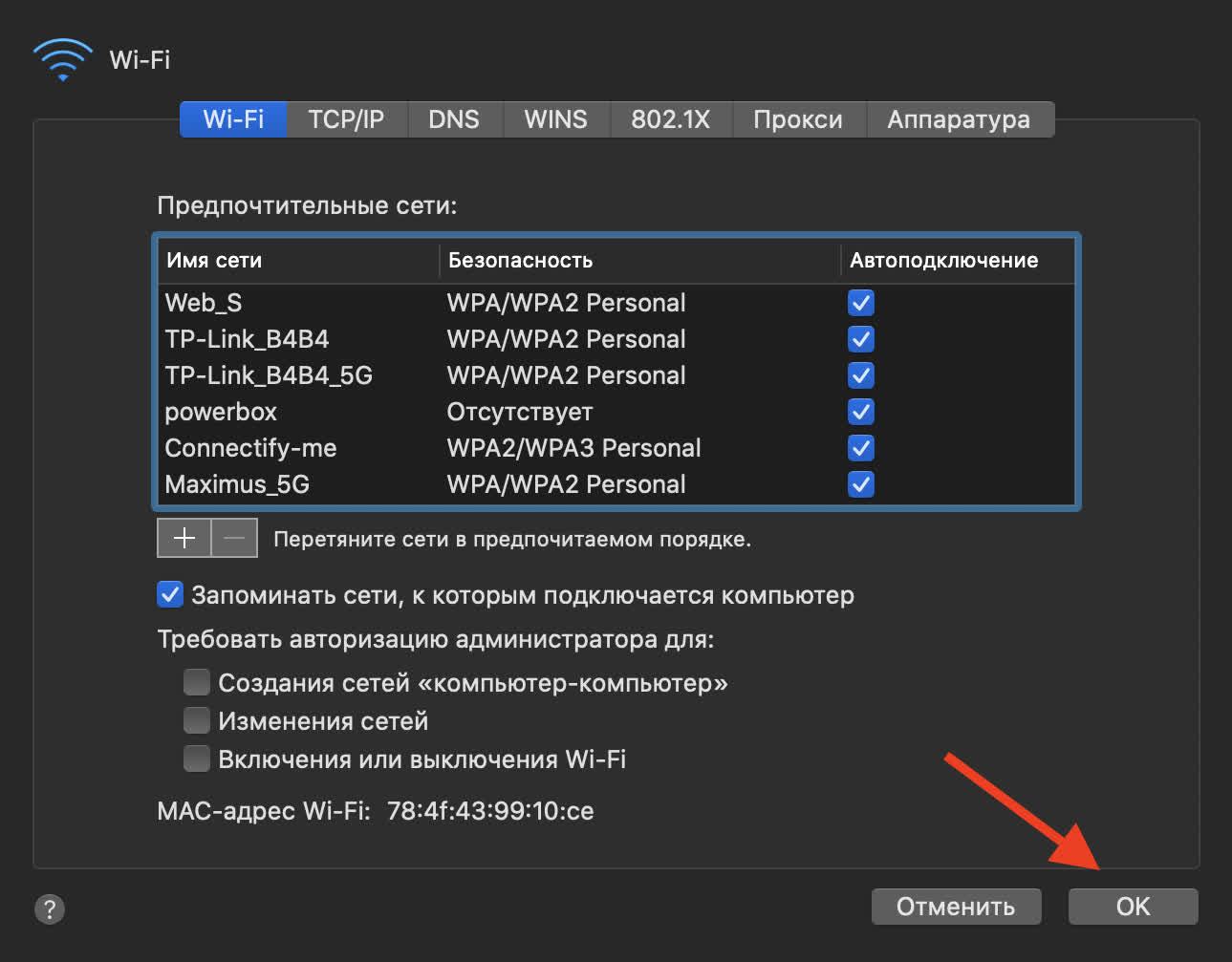 Если вы используете несколько сетей Wi-Fi в одном и том же месте (например в вашем офисе), вы можете не захотеть, чтобы ваш Mac забыл какую-либо из них. В этом случае вы можете расставить приоритеты по тем, которые используете чаще всего.