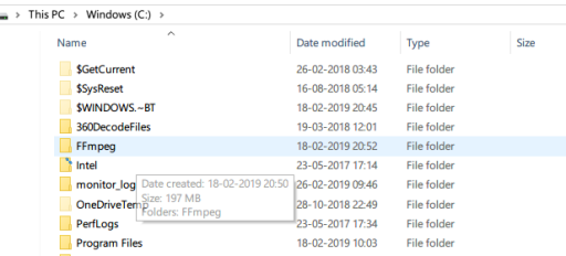 Скопируйте папку FFmpeg и перейдите на диск C. Вставьте папку в корень диска C.