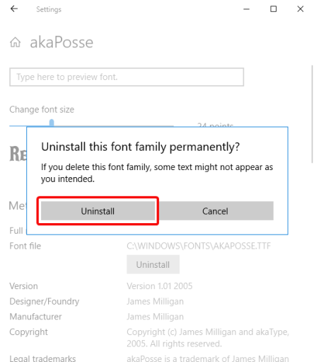 Для семейства шрифтов, в котором у вас есть несколько связанных шрифтов, вам нужно выбрать правильный шрифт из выпадающего меню, прежде чем нажать «Удалить». Если вы хотите удалить всю семью, вы должны сделать это один за другим для каждого варианта шрифта.