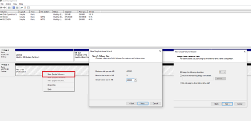 • Теперь у вас будет нераспределенное хранилище. Щелкните правой кнопкой мыши на нем, а затем создайте простой том.