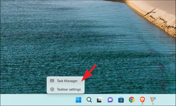 Сначала щелкните правой кнопкой мыши на панели задач и выберите опцию «Диспетчер задач».