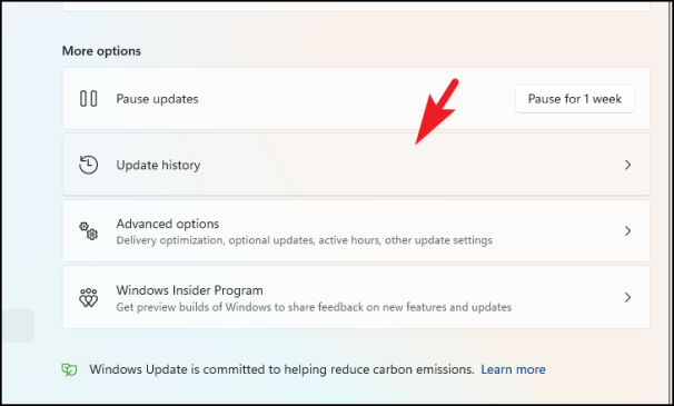 Затем щелкните плитку «История обновлений» в правой части окна.