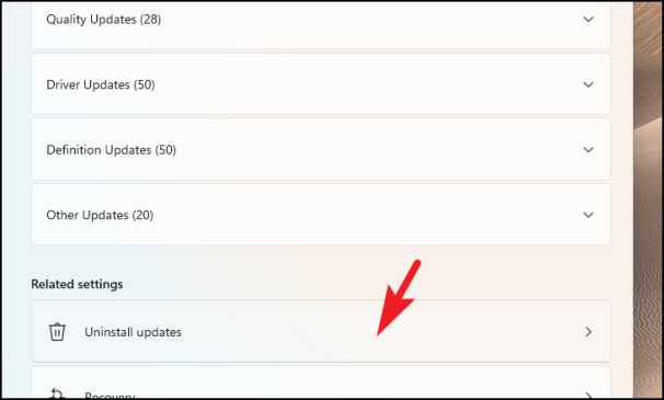 Удалить последние обновления