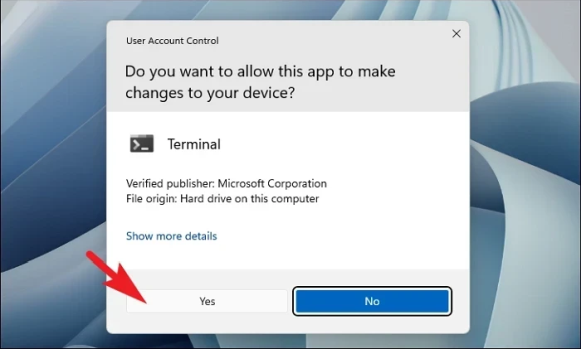 Теперь на вашем экране появится окно UAC (Контроль учетных записей). Если вы не вошли в систему с учетной записью администратора, введите учетные данные для нее. В противном случае нажмите кнопку «Да», чтобы продолжить.