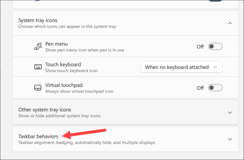 Затем разверните параметр «Поведение панели задач».