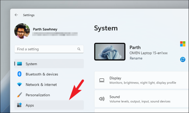 После этого в окне «Настройки» нажмите вкладку «Приложения» на левой боковой панели, чтобы продолжить.