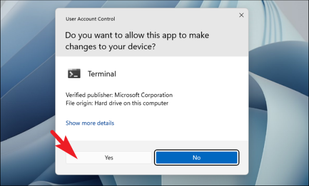 Теперь на вашем экране появится экран UAC. Если вы не вошли в систему с учетной записью администратора, введите учетные данные для нее. В противном случае нажмите кнопку «Да», чтобы продолжить.