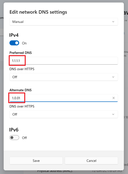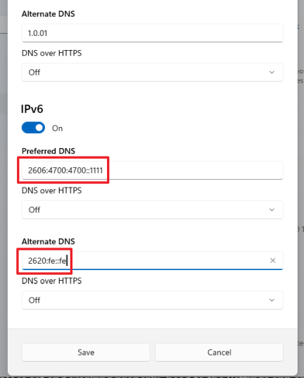 Если вы также включили опцию IPv6. Ниже приведены DNS-серверы, которые вы можете использовать: