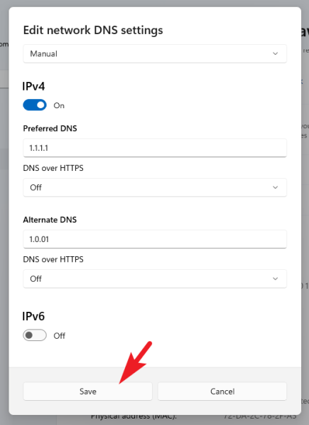 Теперь вам также нужно будет указать DNS-сервер. Введите или скопируйте+вставьте один из указанных ниже адресов в поля «Предпочитаемый DNS» и «Альтернативный DNS». Упомянутые ниже DNS-серверы надежны и бесплатны.