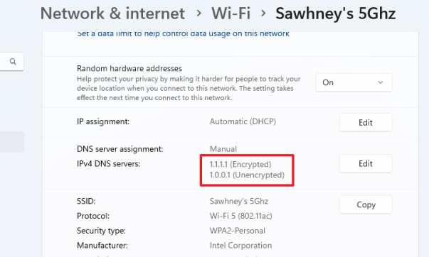 Затем нажмите «Wi-Fi»/«Ethernet» в зависимости от того, для чего вы включили настройки DoH.