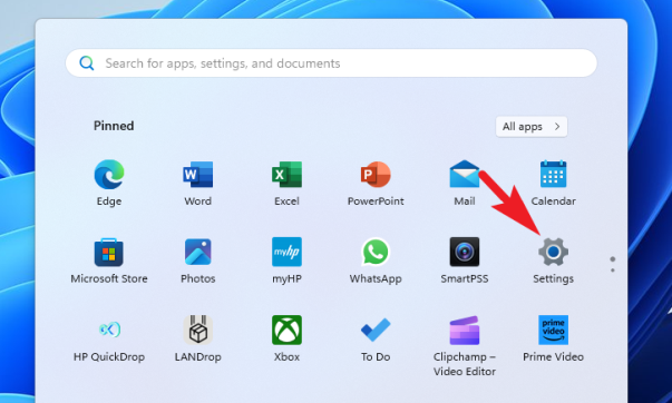 Сначала перейдите в меню «Пуск» и щелкните значок «Настройки», чтобы продолжить. Кроме того, вы также можете нажать клавиши Windows+ I, чтобы открыть окно настроек.
