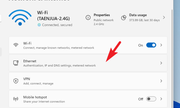 Затем в правом разделе щелкните плитку «Wi-Fi»/«Ethernet», в зависимости от того, какой носитель вы используете в данный момент.
