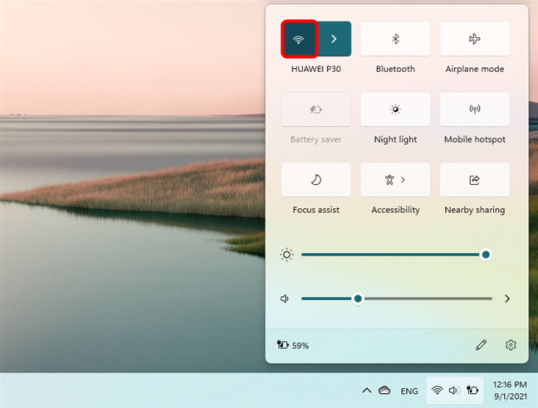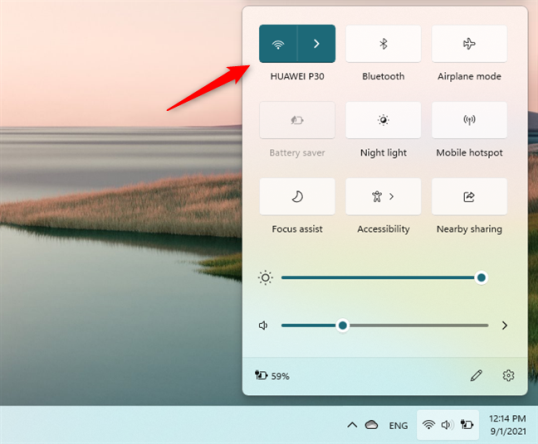 Если на кнопке нет акцентного цвета Windows 11 и под ней написано только Wi-Fi , значит, ваша беспроводная карта отключена. Чтобы включить Wi-Fi в Windows 11, щелкните слева от кнопки Wi-Fi.